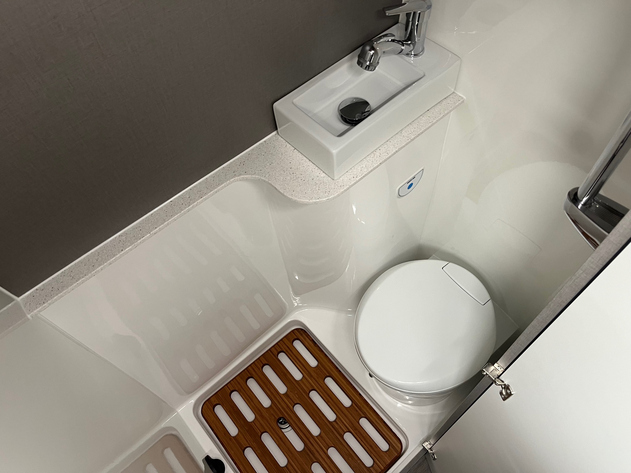 Onboard water pump Onboard gas tank Fire extinguisher Smoke /CO2 alarm Pre wired for solar panel Battery charger /Transformer Touchscreen control panel |